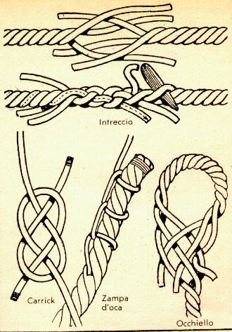 | Una corda ha sempre la tendenza a disfarsi (cioe' i trefoli si allentano naturalmente), a meno che le sue estremità non siano fermate, senza di che diventa presto inutilizzabile. |