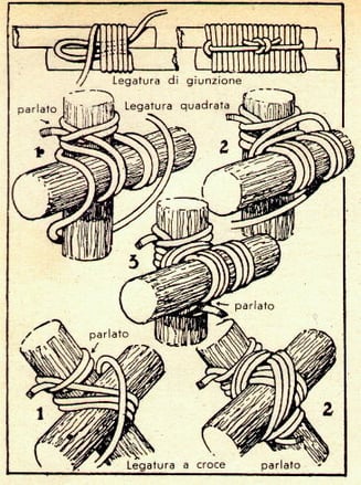 I nodi da costruzione: così chiamati perchè servono a riunire i diversi pezzi di legno in un qualsiasi lavoro di pionieristica.